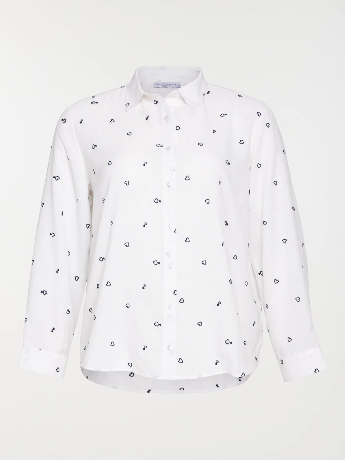 Élégante, féminine et facile à porter, cette chemise ornée de cœurs brodés apporte une touche de douceur à votre tenue. Idéale pour un look chic et moderne au quotidien.
