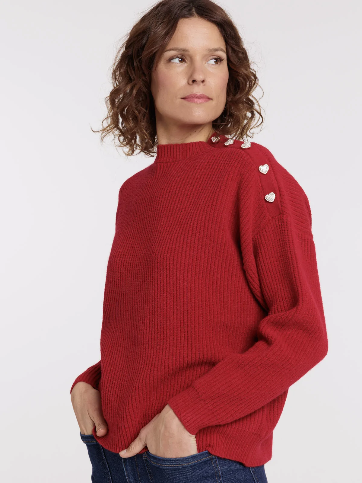 Pull boutons coeurs strass femme