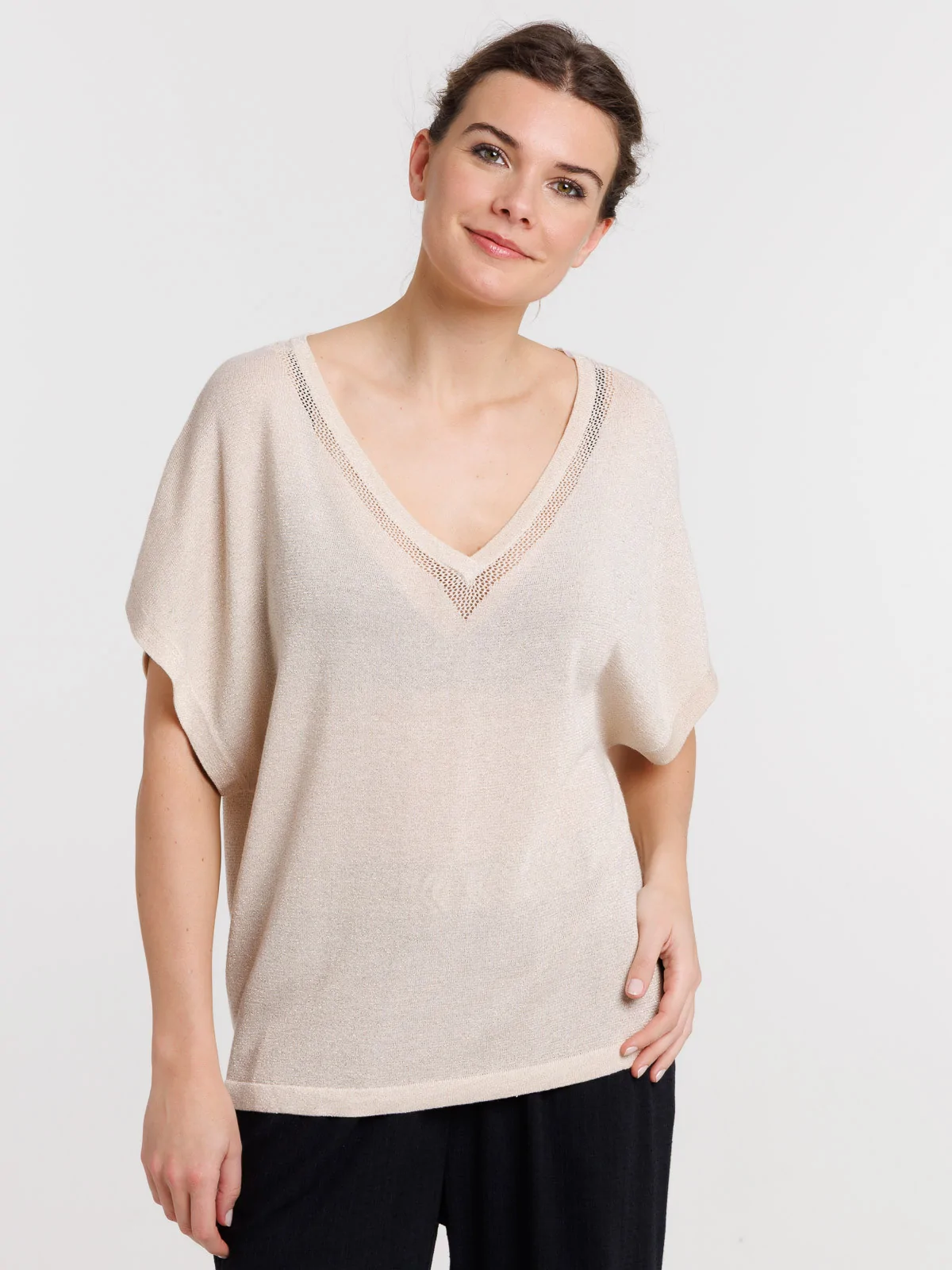 Pull femme col V brillant