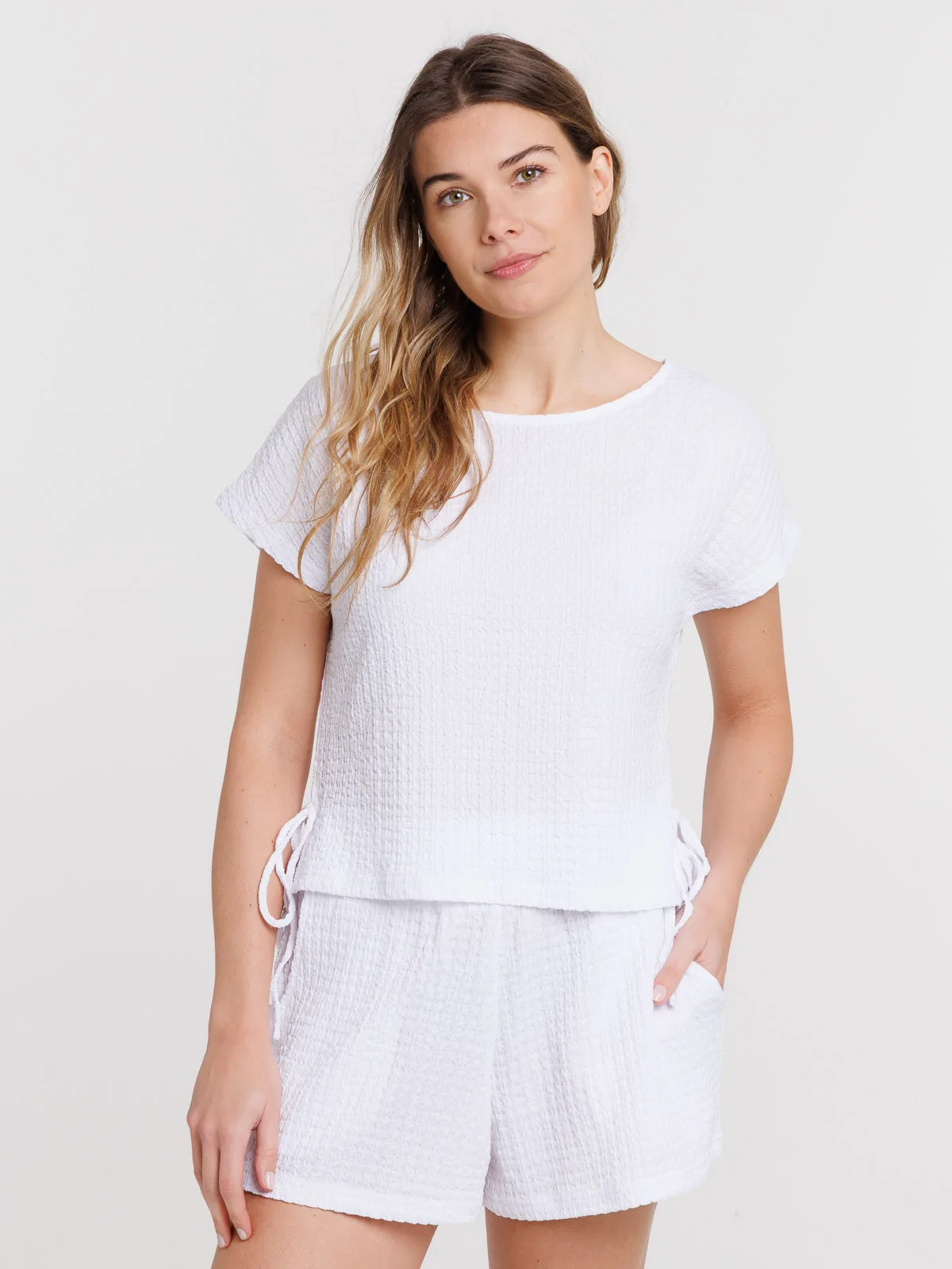 Apportez une touche d'originalité à votre look avec ce t-shirt, sublimé par des noeuds sur les côtés ! Ce détail féminin et tendance transforme un basique en pièce stylée, idéale pour toutes les occasions.