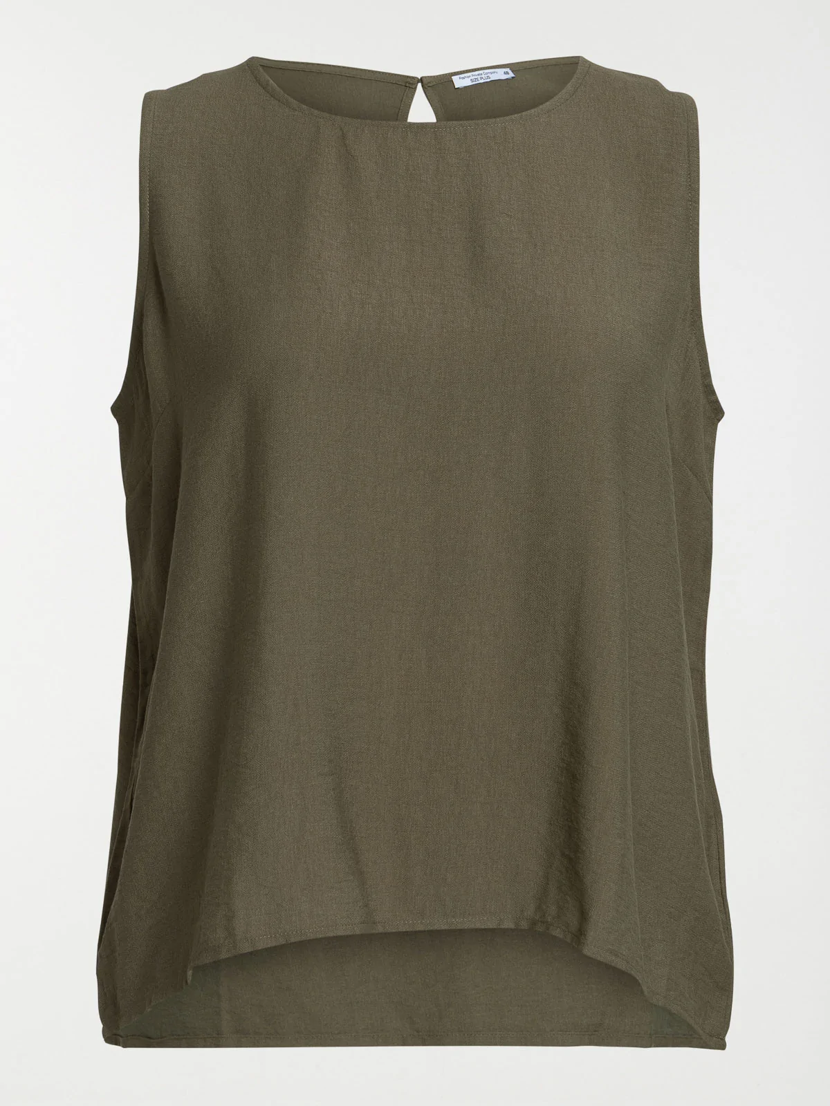 Adoptez un look naturel et sophistiqué avec ce top vert sombre ! Sa coupe fluide et sa matière douce garantissent un confort optimal tout en mettant en valeur la silhouette avec élégance. On lui associe le pantalon assorti pour un total look.