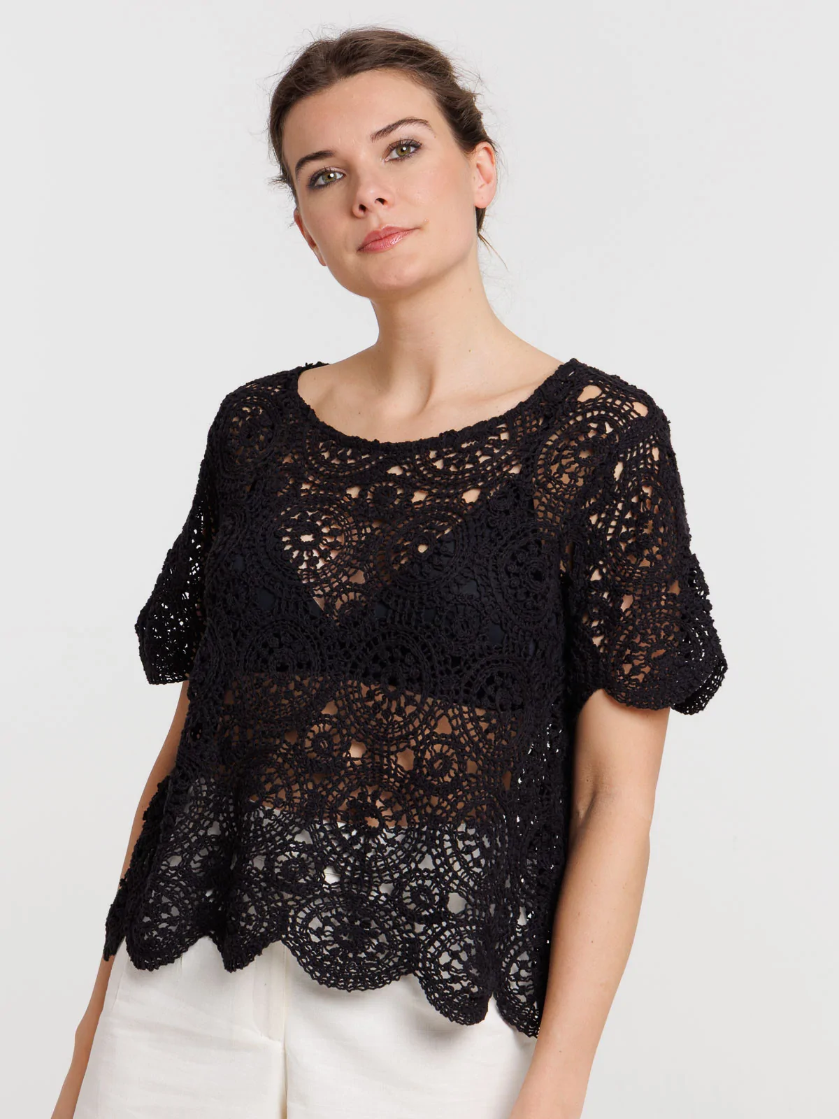 Blouse noire en crochet femme