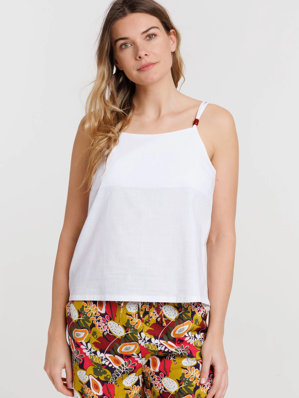 Minimaliste et féminin, ce top à bretelles croisées dans le dos est une pièce incontournable du dressing estival. Son coloris écru, doux et naturel, apporte une touche de fraîcheur et s’accorde facilement avec toutes vos tenues. Léger et agréable à porter, il se prête aussi bien à un look décontracté qu’à une tenue plus habillée.