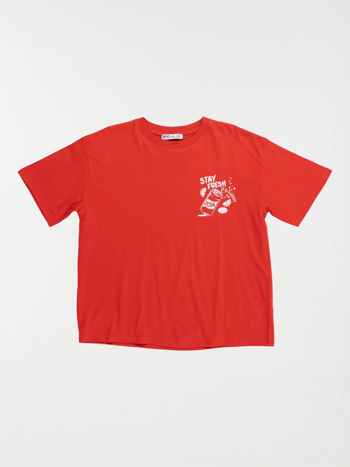 Ce t-shirt pour garçon apporte une touche fun* et pleine d'énergie au dressing des plus jeunes. Il présente un motif soda stylisé accompagné d'un message "Stay fresh**' sur la poitrine pour un look moderne et ludique.
