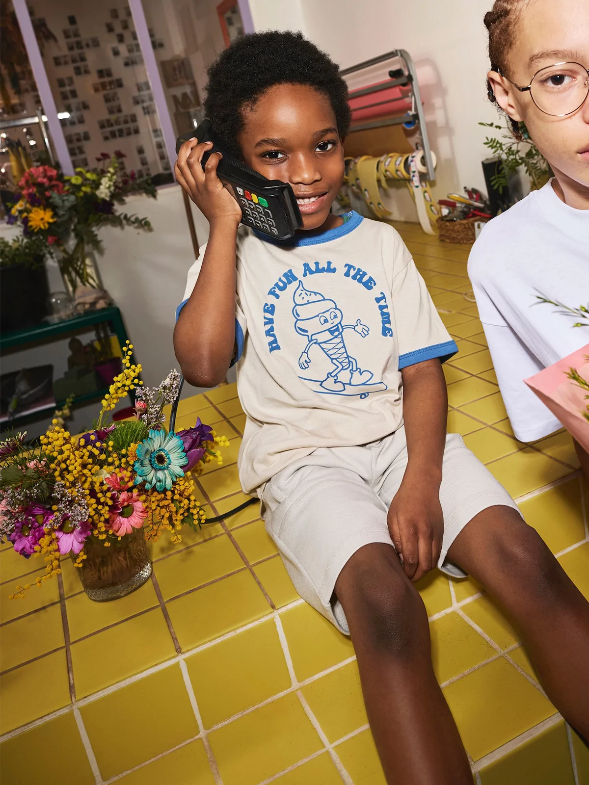 Ce t-shirt séduit par son motif original représentant une glace sur un skateboard, accompagné du message "Have fun all the time*". À associer avec un short, un jean ou un bermuda pour un look décontracté et moderne.