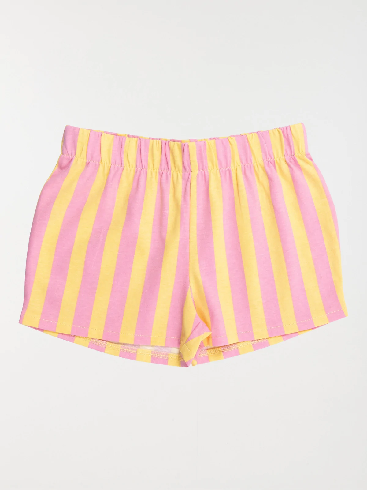 Un petit short qu’on peut collectionner dans tous les coloris ! On aime sa matière 100% coton, sa taille élastique et ses jolies rayures de couleur barbe à papa et jaune. Un basique indispensable dans la garde-robe de votre fille !