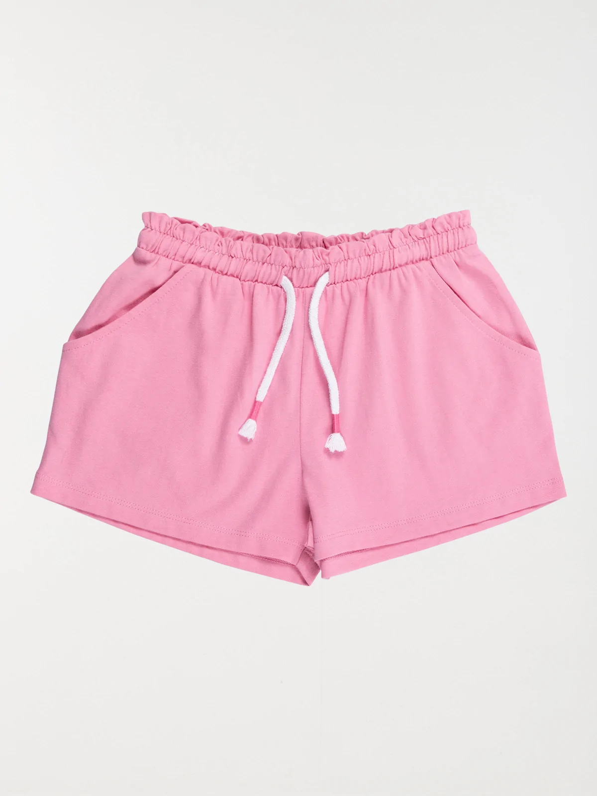Un petit short qu'on peut collectionner dans tous les coloris ! On note sa matière 100% coton et sa taille élastique avec liens à nouer. Un basique indispensable à la garde-robe de votre fille !