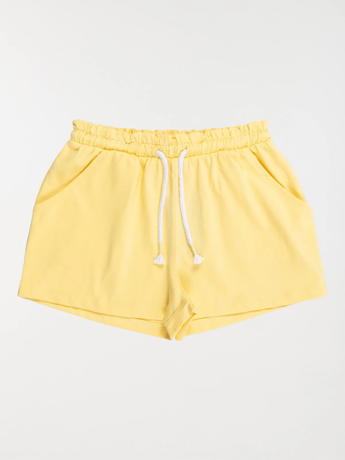 Un petit short qu'on peut collectionner dans tous les coloris ! On note sa matière 100% coton et sa taille élastique avec liens à nouer. Un basique indispensable à la garde-robe de votre fille !