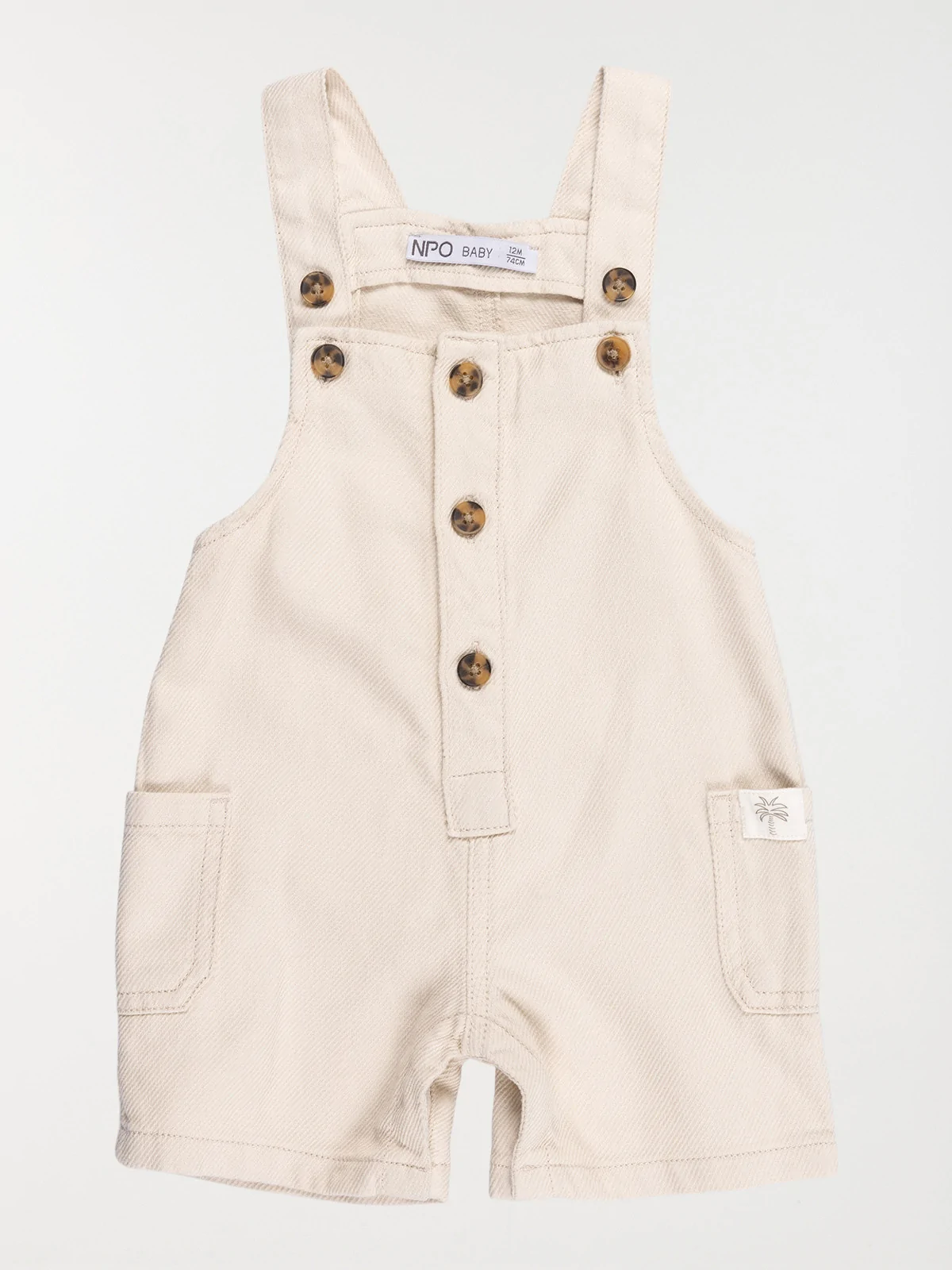 Un essentiel du dressing : la salopette, pratique et pleine de charme ! Elle s'ouvre grâce à de jolis boutons et se distingue par un petit palmier sur la poche. À porter avec un tee-shirt imprimé pour un look encore plus adorable.