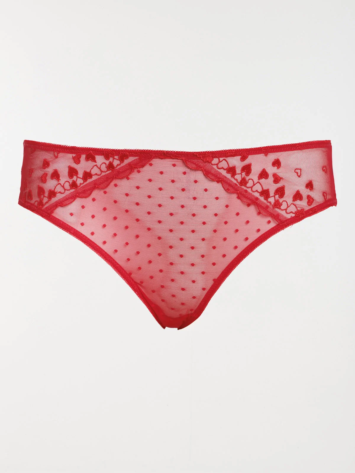 Ce tanga féminin à l'allure romantique est le cadeau idéal pour la Saint -Valentin ! A coordonner avec le soutien-gorge assorti.