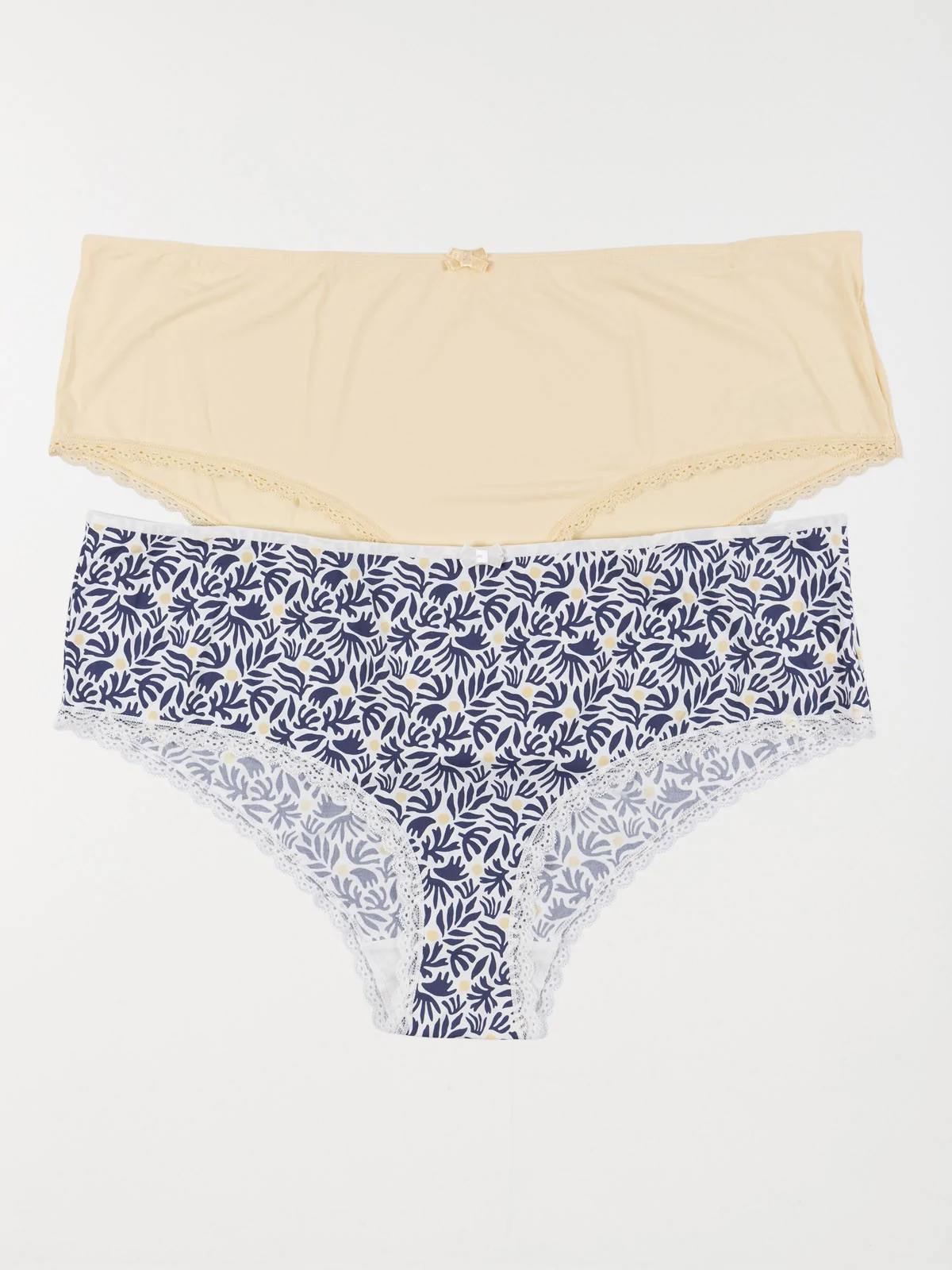 Un lot de 2 shorties joliment agrémenté d'un bord en dentelle festonnée, on adore ! A coordonner avec le lot de soutiens-gorge assorti.
