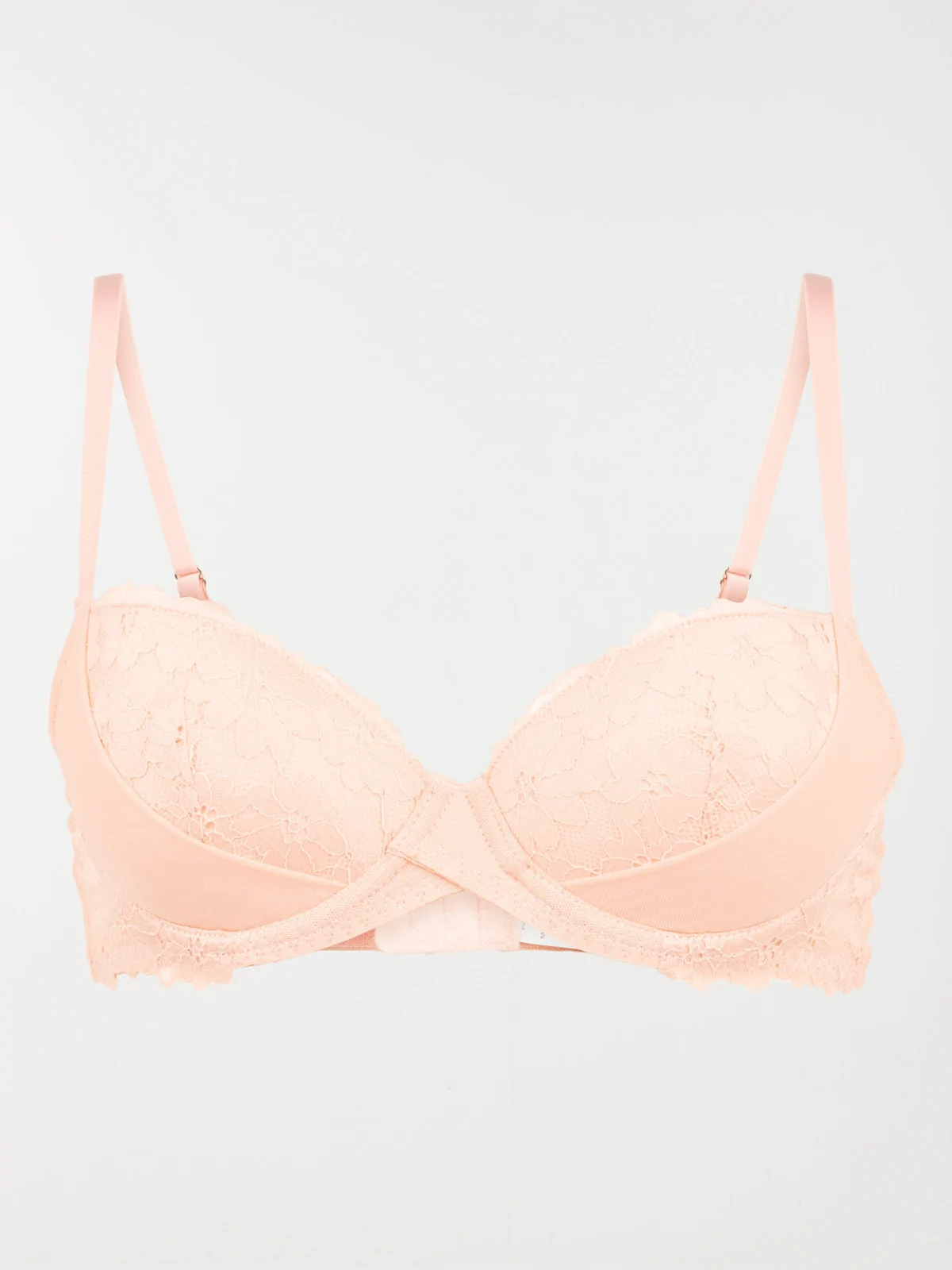 Ce soutien-gorge composé de dentelle fleurie offre un résultat très élégant. Porté avec le shorty assorti, il compose un bel ensemble lingerie.