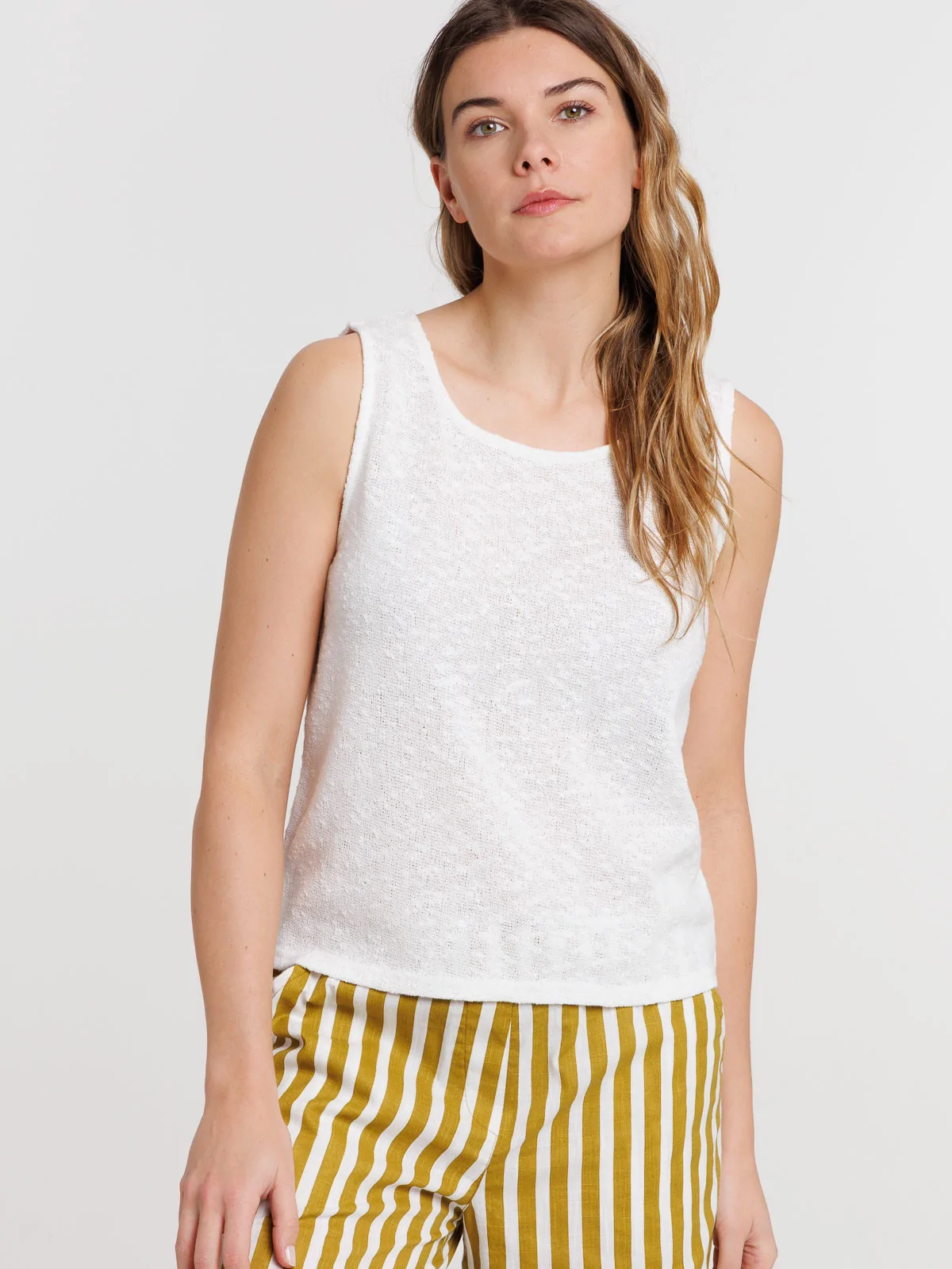 Débardeur écru col rond femme