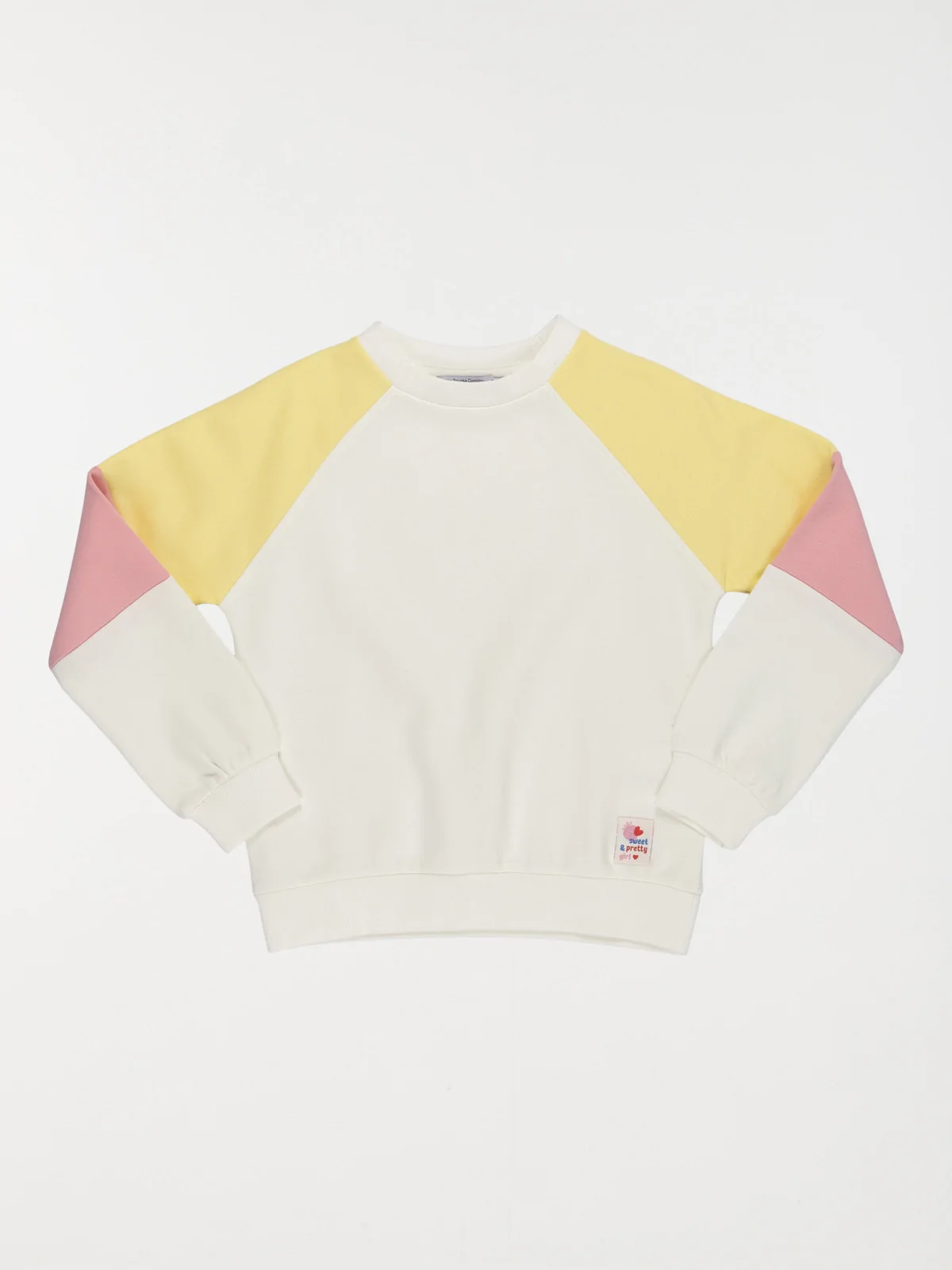 Le sport et la mode font équipe avec ce joli sweat qui joue la carte du colorblock* pour un look tendance et coloré. A associer au pantalon assorti et une paire de baskets.
