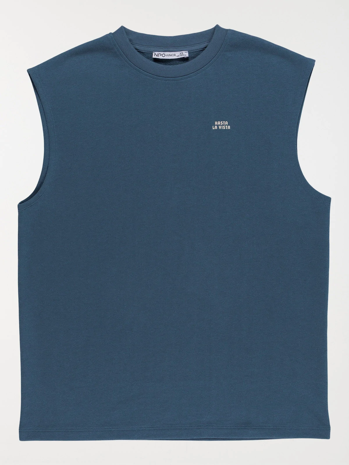 Ce t-shirt sans manches garçon est parfait pour les journées ensoleillées. Son petit message imprimé sur la poitrine apporte une touche moderne et discrète.